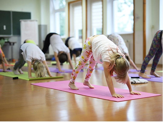 Everyone is welcome! Younger kids enjoy play-based yoga while older kids (grades 3–5) take on leadership roles as helpers and role models.